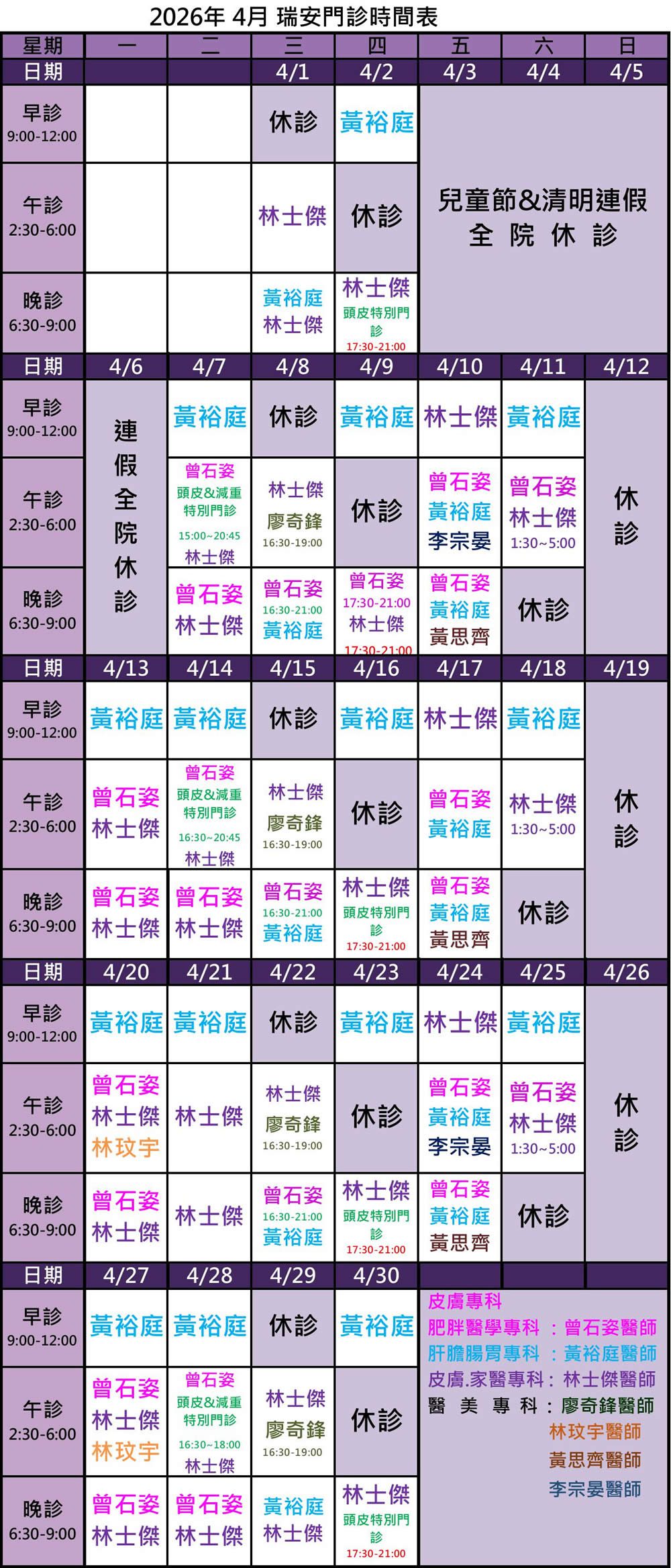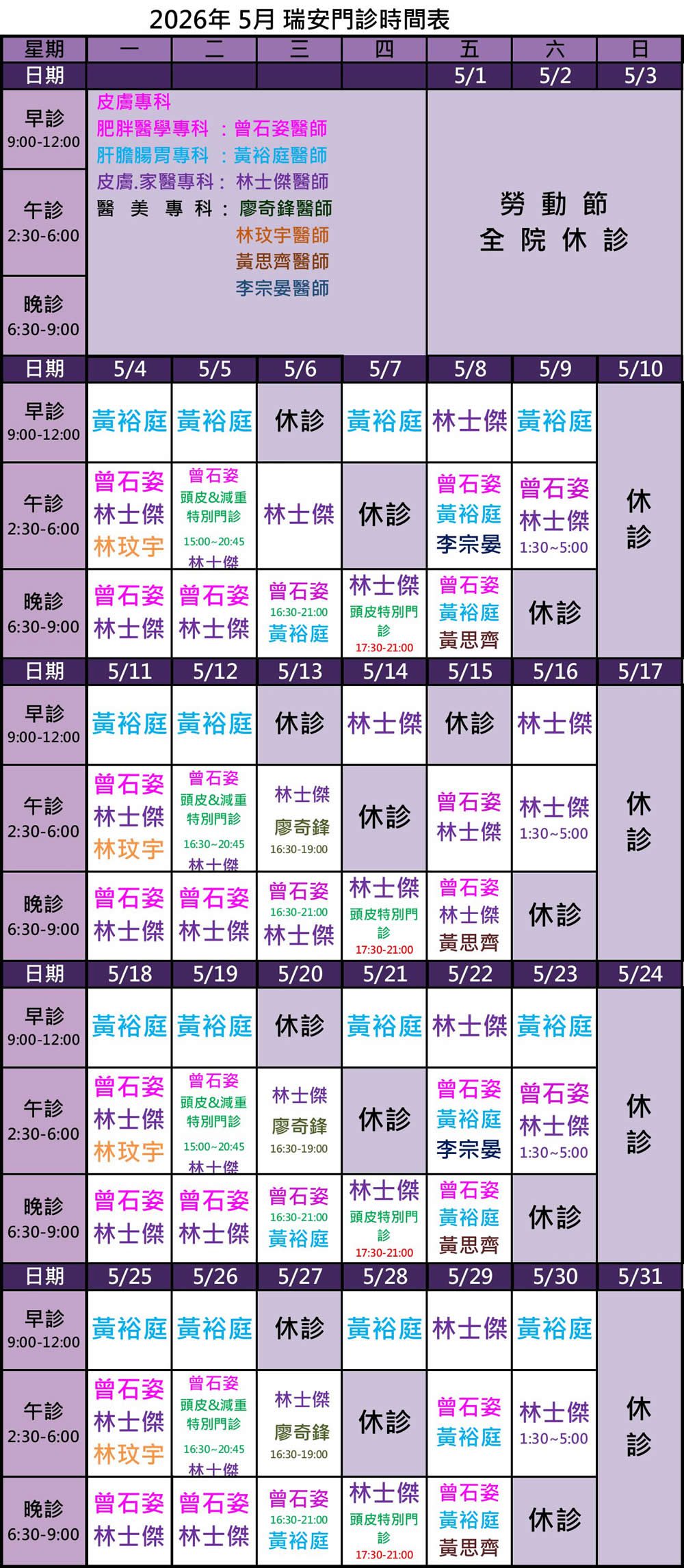 ⭐ 曾石姿醫師晚間門診及(六)午門診請先預約,額滿不受理。