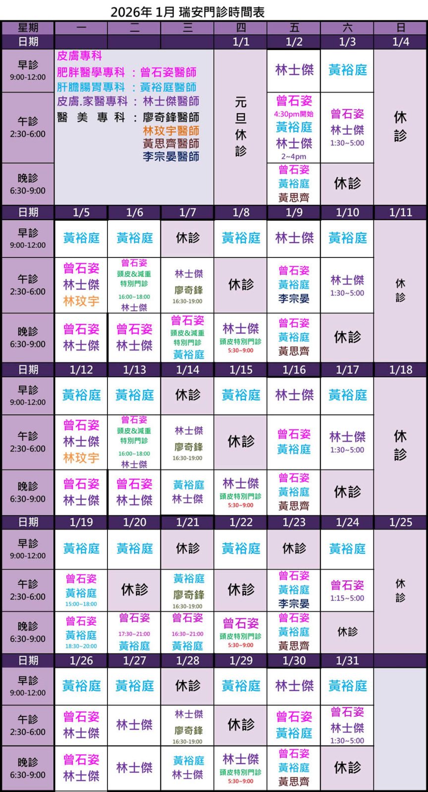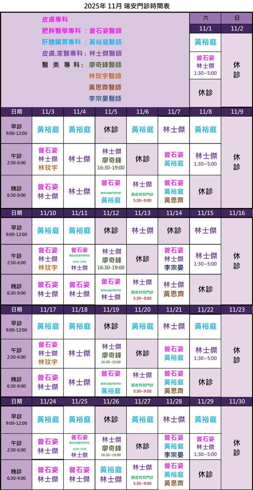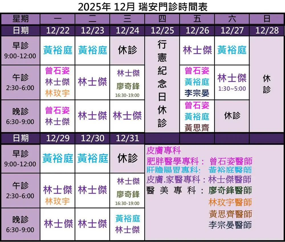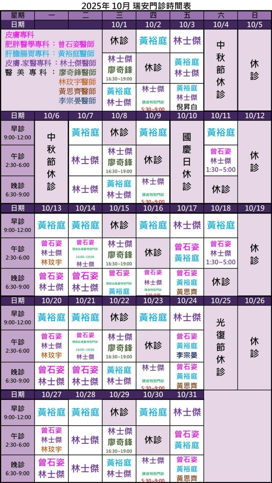 瑞安診所特約學校 : 東海大學,靜宜大學,逢甲大學,弘光大學,嶺東大學