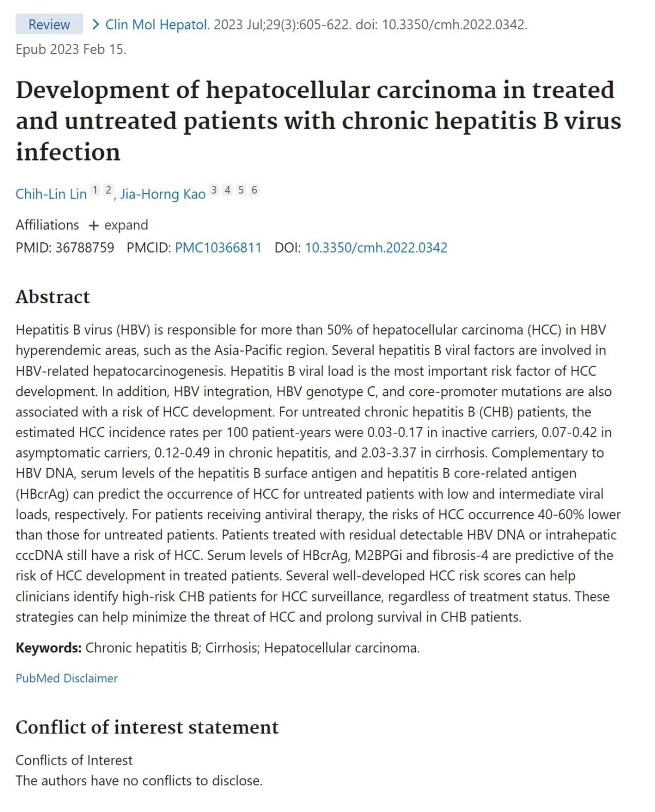 慢性B型肝炎是全球肝癌的主要原因之一,特別是在亞太地區。根據《Clinical and Molecular Hepatology》發表的一項研究,治療和未治療的慢性B型肝炎患者的肝癌風險有顯著差異。