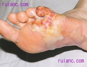 - 潰爛型:腳趾間有厲害的潰爛,整個表皮脫掉,露出赤紅色的皮。