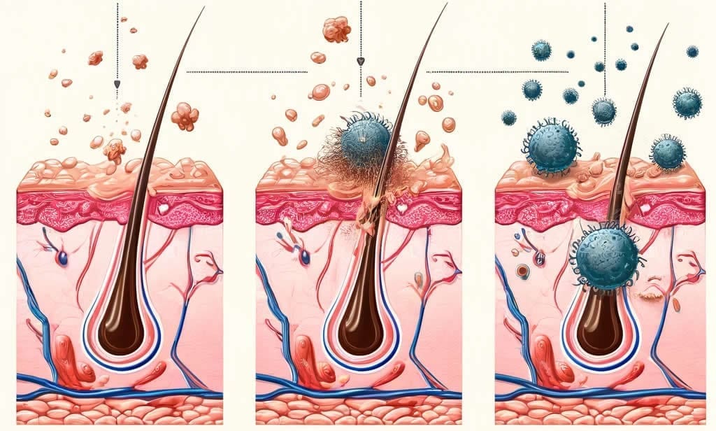 • 頭皮角質細胞過度增生:當細胞更新速度加快,老廢角質來不及正常脫落,便會累積成塊。