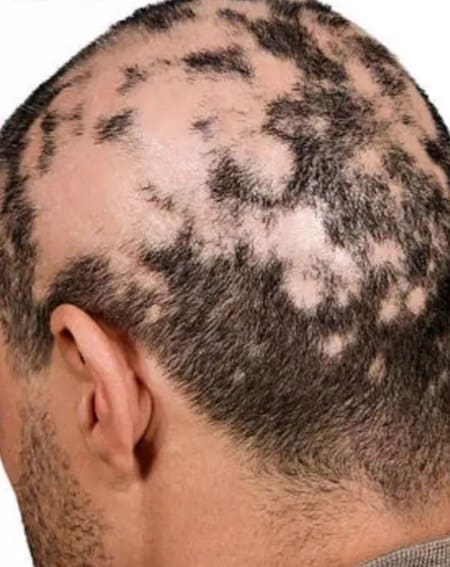 In some adult patients, alopecia areata can rapidly worsen in a short period, eventually leading to total baldness. For example, a 35-year-old male patient experienced increasing work-related stress and suddenly noticed multiple bald patches on his scalp. Within a few months, these patches rapidly expanded, leading to the complete loss of all hair, resulting in total baldness. In such cases, patients may suffer from severe self-esteem issues and social anxiety, requiring comprehensive treatment and psychological support.
