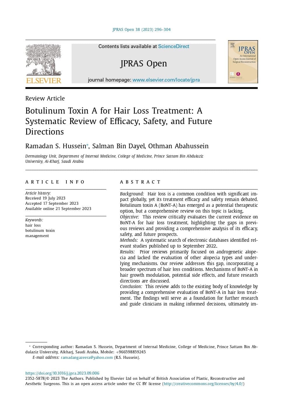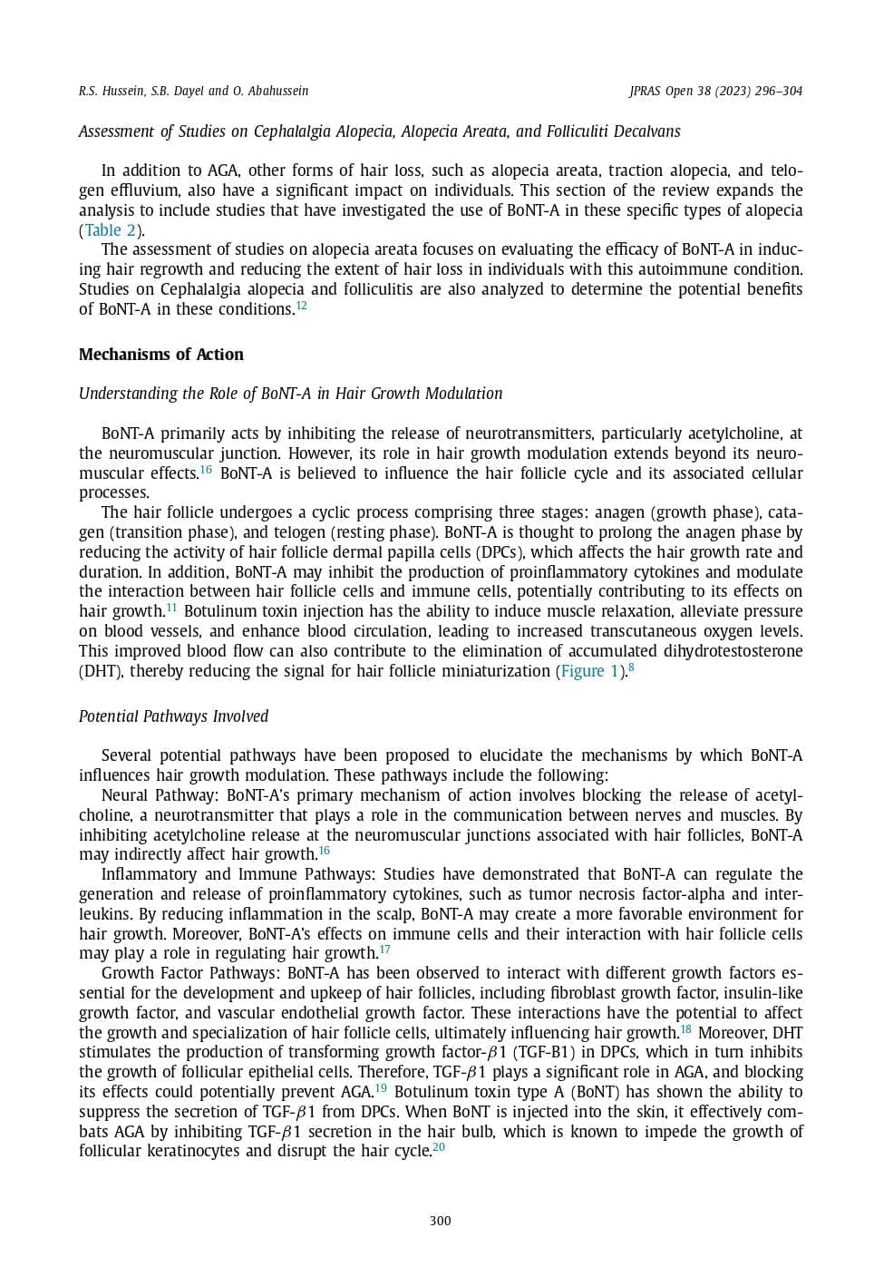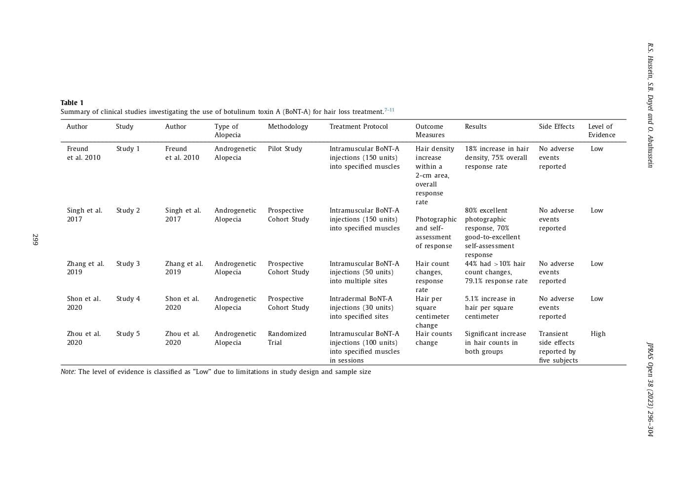 參考文獻資料 Summary of “Botulinum Toxin A for Hair Loss Treatment: A Systematic Review of Efficacy, Safety, and Future Directions