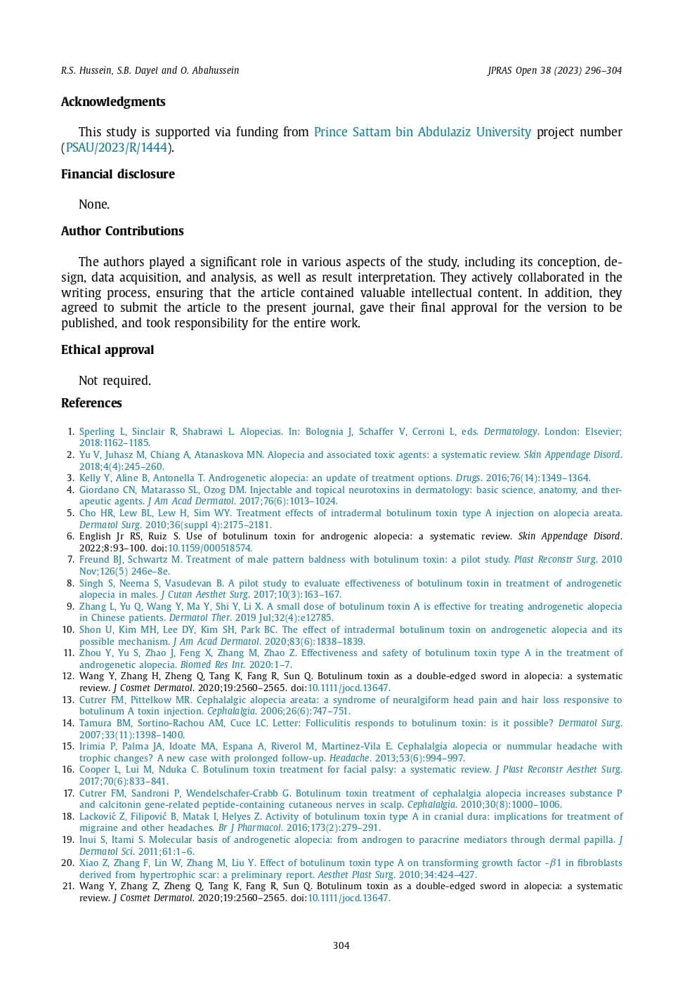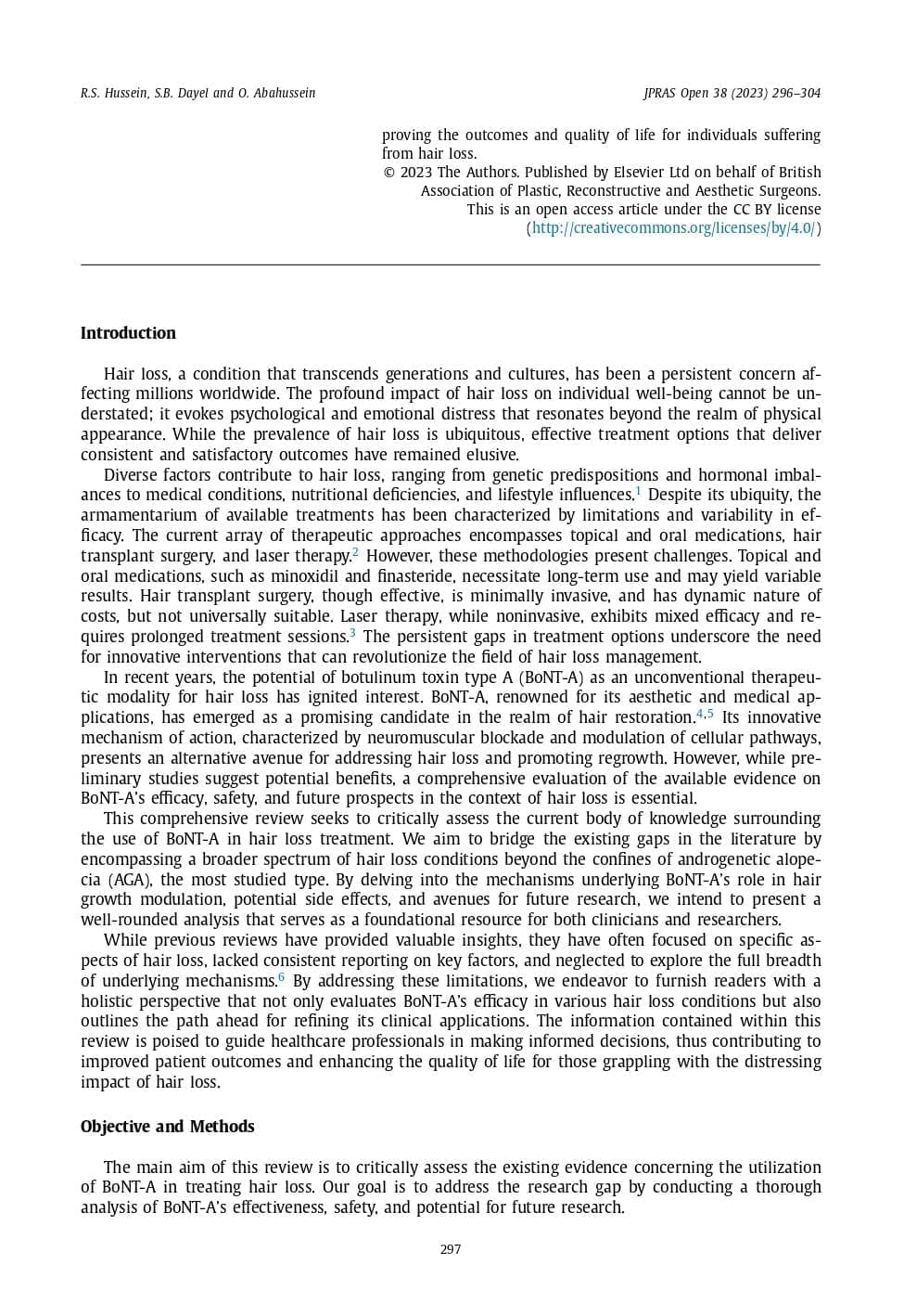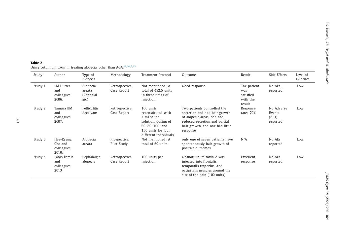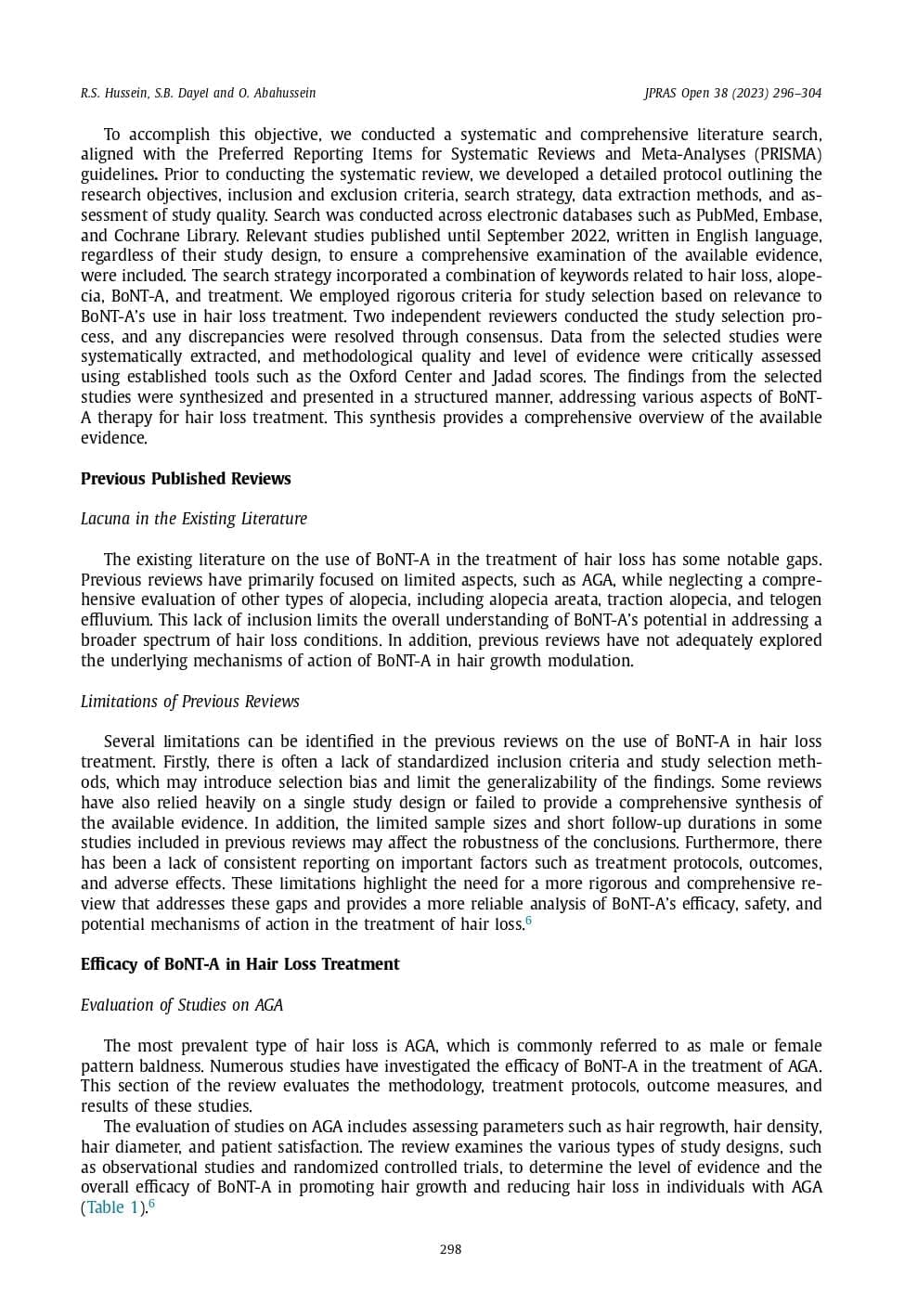 參考文獻資料 Summary of “Botulinum Toxin A for Hair Loss Treatment: A Systematic Review of Efficacy, Safety, and Future Directions