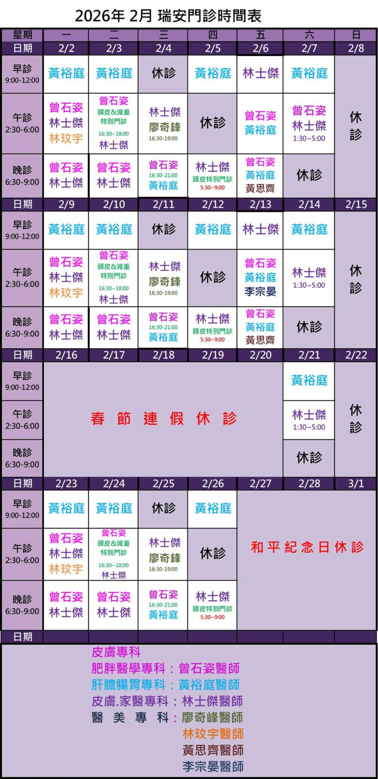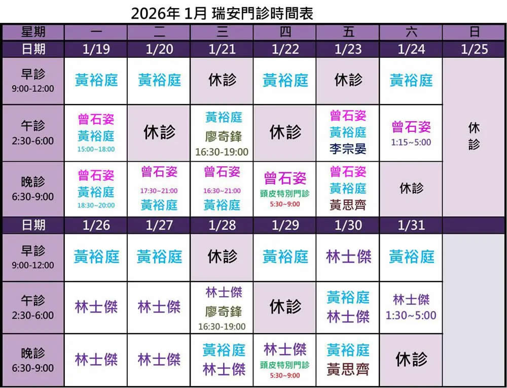 ⭐ 曾石姿醫師晚間門診及(六)午門診請先預約,額滿不受理。