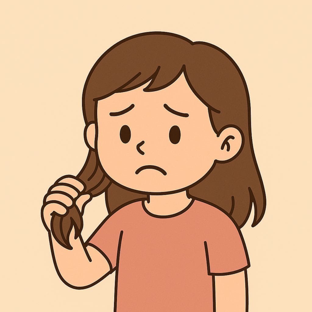 這是一種行為性掉髮,孩子會不自覺拉扯頭髮、搓揉髮絲,導致局部頭髮斷裂或脫落。通常與心理壓力或焦慮有關,例如家庭變故、學校壓力、情緒困擾等。