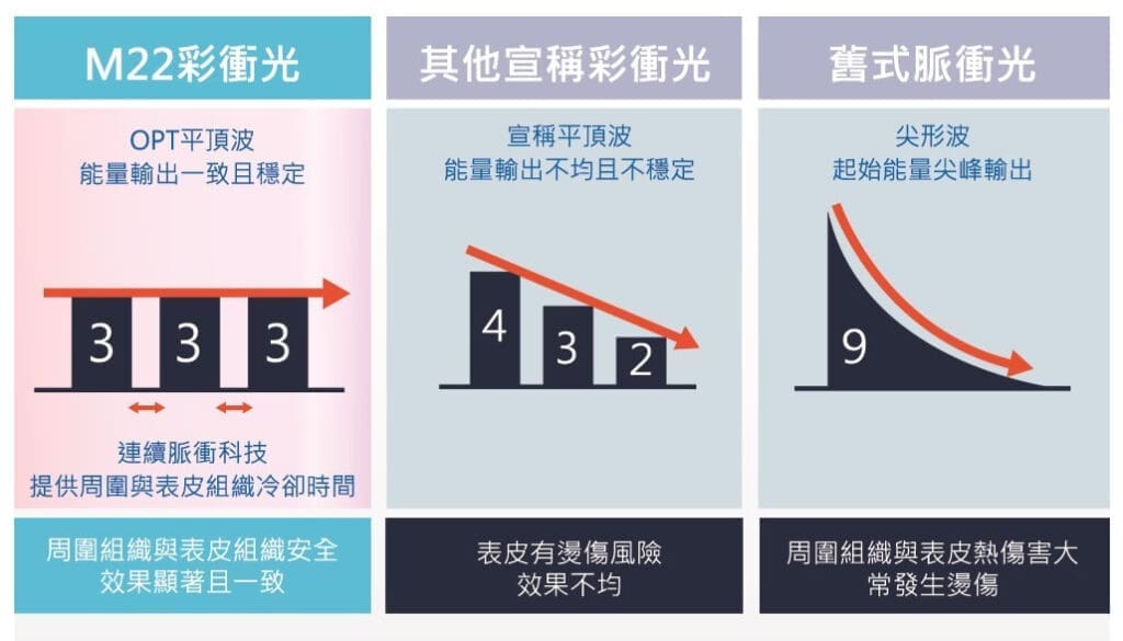 OPT彩衝光的「立方波專利科技」,提供穩定能量並可多重分段輸出,給予周圍組織散熱時間,在保護表皮之下精準治療,帶來最少的肌膚傷害,讓治療溫和、安全、有效,經全球醫界超過十年實證,目前已累積超過2000位歷經10年定期治療的亞洲案例,高達88%證實皮膚有效改善,且不會產生其他雷射治療後的敏感狀態。