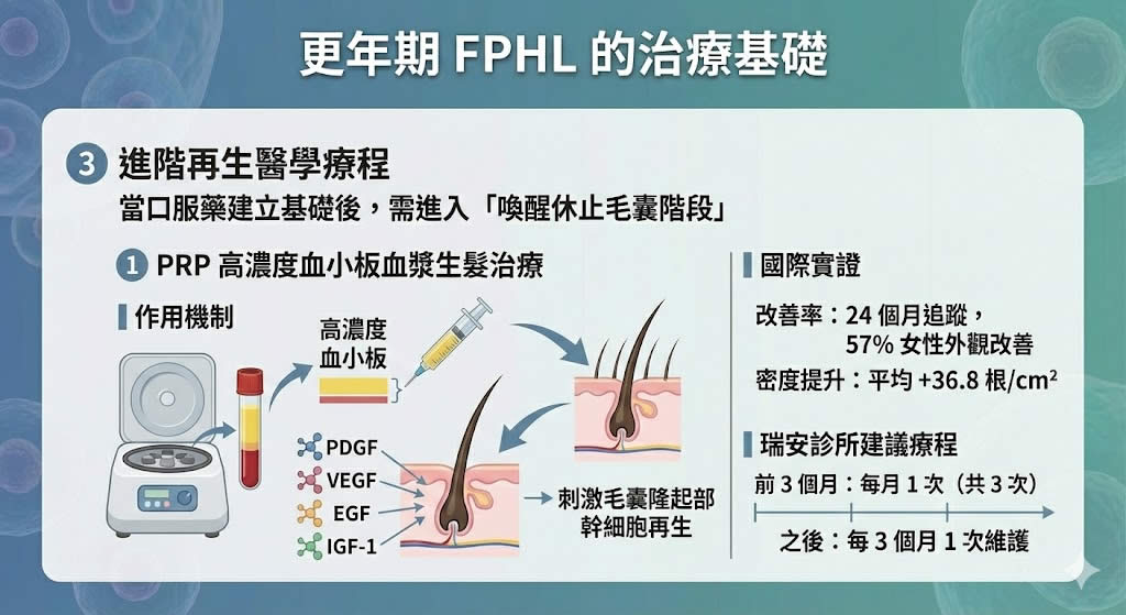 更年期女性落髮(Female Pattern Hair Loss, FPHL)在台灣發生率逐年上升,醫學共識已從「單一治療」進化為**「複合式精準治療」。