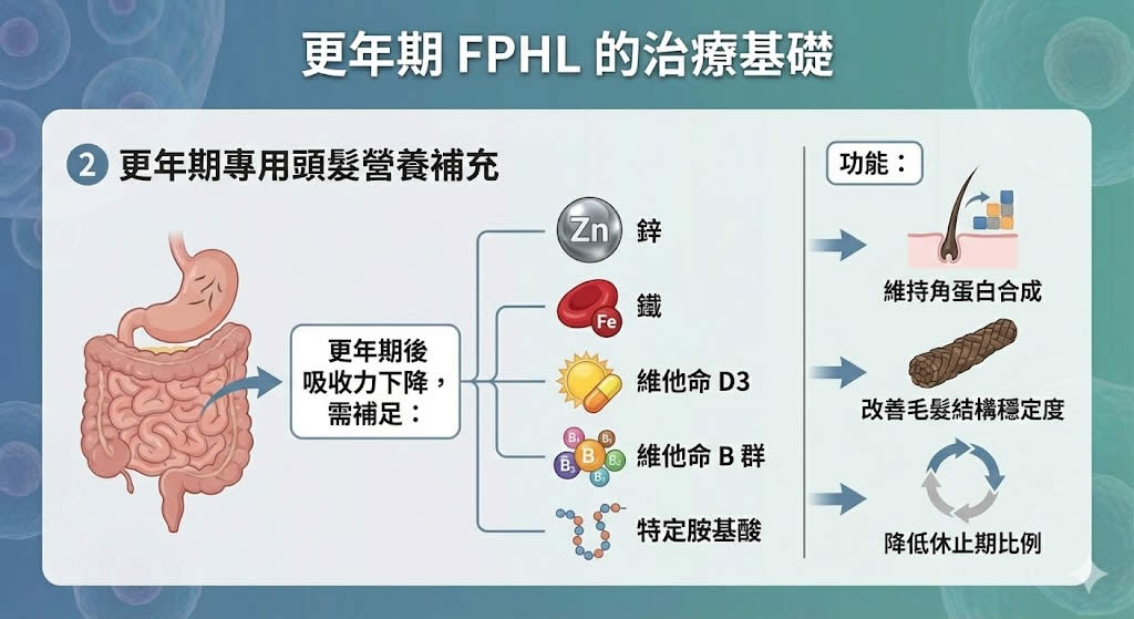 二、口服藥物與營養補充:更年期 FPHL 的治療基礎