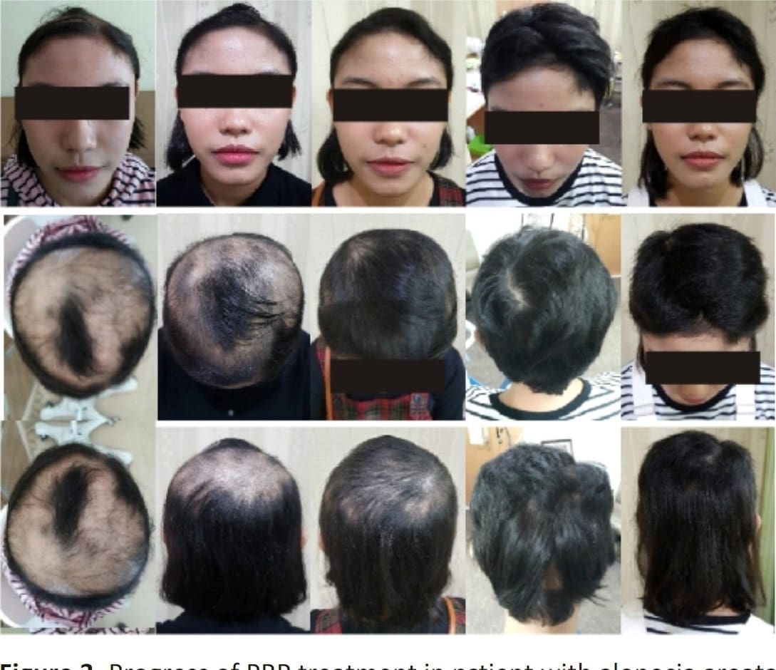 基於上述三個病例的療效評估,我們得出結論,PRP在促進毛髮生長方面是成功的。然而,在PRP被廣泛用作臨床治療選項之前,仍需解決一些研究設計問題,如重複治療的需求、一致的數據記錄和評估等。本研究中,間隔四週進行3-4次PRP注射顯示出積極效果,但建議至少進行5次治療以獲得最佳結果。記錄患者滿意度和自我報告的結果可能有助於識別成功的PRP治療以及那些能夠導致高依從性的治療,因為患者滿意度是目前健康系統的一個關鍵焦點。