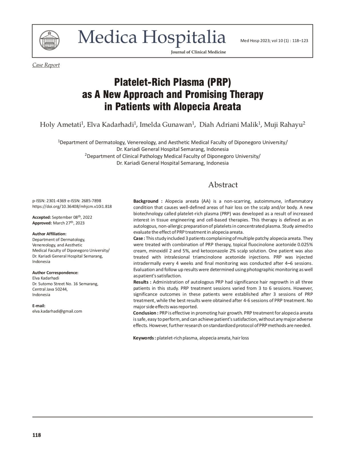 Platelet-Rich Plasma (PRP) As A New Approach And Promising Therapy In Patients With Alopecia Areata
