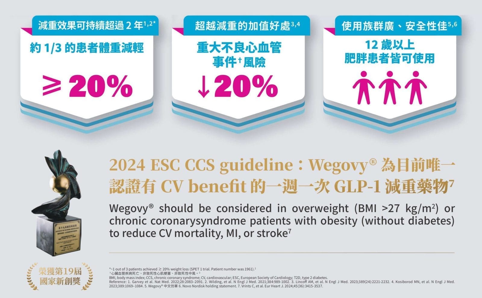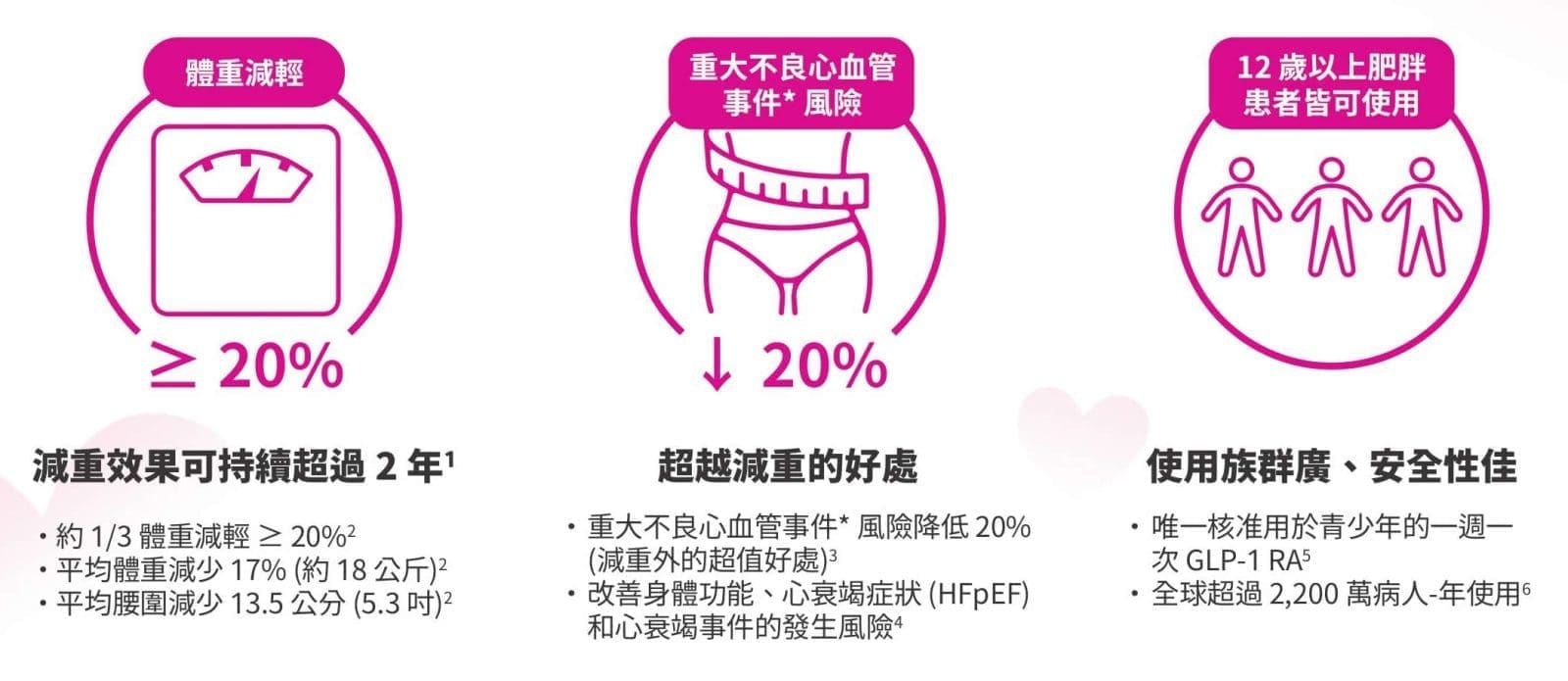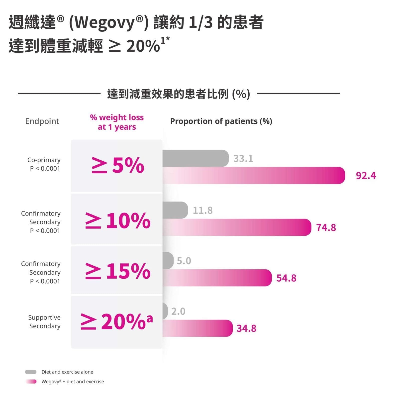 這些結果讓 Wegovy® 成為目前減重效果最顯著的合法處方藥之一。