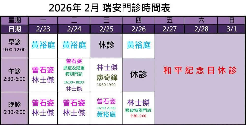 ⭐ 曾石姿醫師晚間門診及(六)午門診請先預約,額滿不受理。